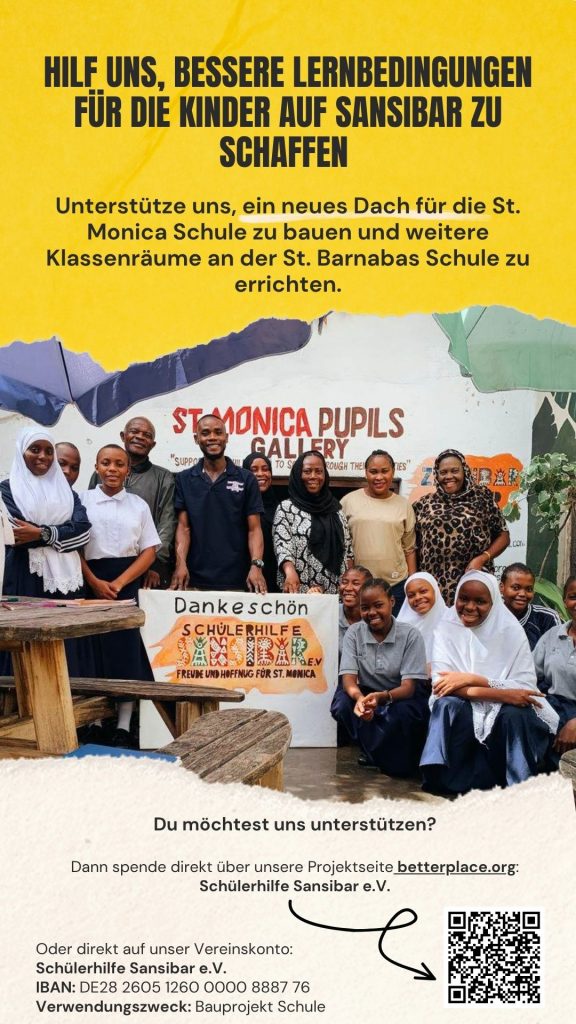 Jetzt helfen: Unterstütze uns dabei, den Kindern auf Sansibar eine sichere und schöne Lernumgebung zu ermöglichen. Jeder Beitrag zählt!