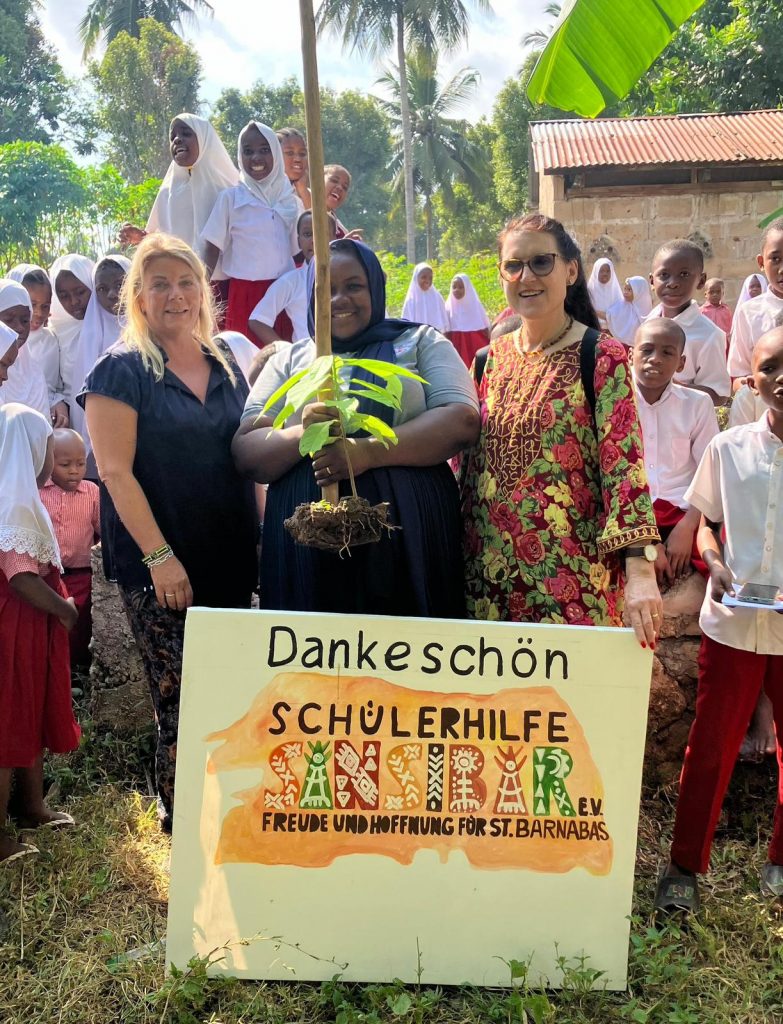 Bei ihrem Besuch auf Sansibar wurden unsere Vereinsvorsitzende Helga und Vereinsmitglied Annette herzlich an der St. Barnabas Schule empfangen. Als Symbol der Zusammenarbeit pflanzten sie gemeinsam mit den Schüler:innen und Lehrkräften einen Baum – ein lebendiges Zeichen für Freundschaft und Nachhaltigkeit.